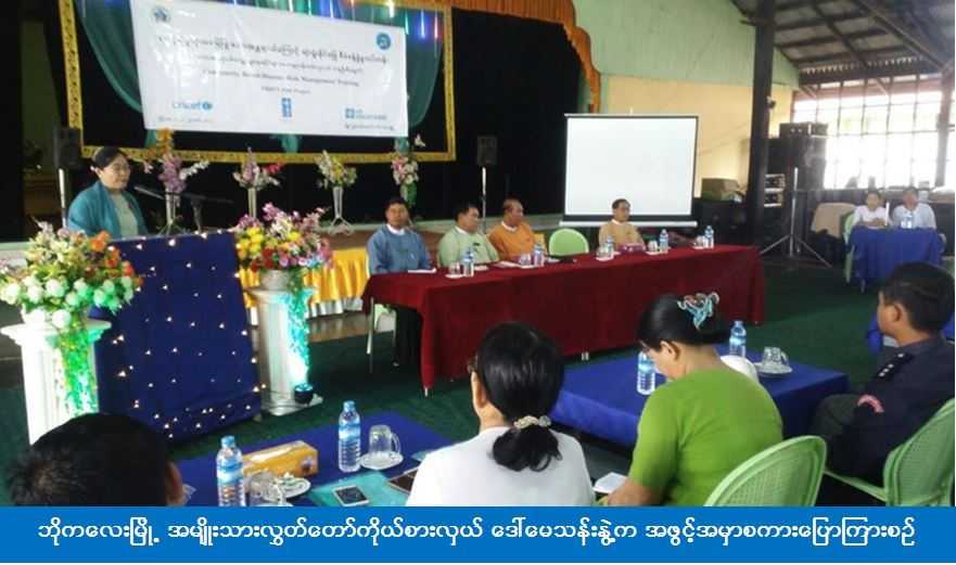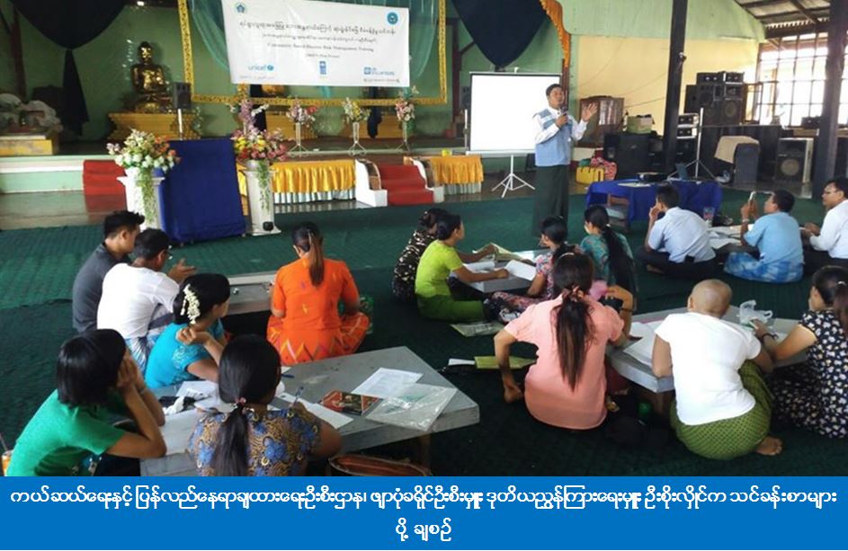 (၂၁-၈-၂၀၁၇) ရက်နေ့တွင် ဖျာပုံခရိုင်ဦးစီးမှူးရုံး (ကဆရ) သည် UN Volunteers အဖွဲ့နှင့်ပူးပေါင်း၍ ရပ်ရွာလူထုအခြေပြု ဘေးအန္တရာယ်ကြောင့် ဆုံးရုံးနိုင်ခြေ စီမံခန့်ခွဲမှုသင်တန်းဖွင့်ပွဲအား ဘိုကလေးမြို့၊ မဟာအောင်တော်မူဘုရားဝင်းအတွင်းရှိ ချိုကြည်တန်ဆောင်း၌ ကျင်းပခဲ့ရာ အင်အား (၁၅၀) ကျော် တက်ရောက်ခဲ့ပါသည်။ အဆိုပါသင်တန်းဖွင့်ပွဲအခမ်းအနားသို့ ဘိုကလေးမြို့ အမျိုးသားလွှတ်တော်ကိုယ်စားလှယ် ဒေါ်မေသန်းနွဲ့က အဖွင့်အမှာစကားပြောကြားခြင်း၊ ဘိုကလေးမြို့ အထွေထွေအုပ်ချုပ်ရေးဦးစီးဌာန၊ မြို့နယ်အုပ်ချုပ်ရေးက ကြိုဆိုနှုတ်ခွန်းဆက်စကားပြောကြားခြင်းနှင့် ကယ်ဆယ်ရေးနှင့် ပြန်လည်နေရာချထားရေးဦးစီးဌာန၊ ဖျာပုံခရိုင်ဦးစီးမှူး ဒုတိယညွှန်ကြားရေးမှူး ဦးစိုးလှိုင်က သင်တန်းဖွင့်လှစ်ရခြင်းနှင့်ပတ်သက်၍ ရှင်းလင်းဆွေးနွေးခြင်းများ ပြုလုပ်ခဲ့ပါသည်။ သင်တန်းအား (၂၁-၈-၂၀၁၇) မှ (၂၅-၈-၂၀၁၇) ရက်နေ့အထိ (၅) ရက်ကြာ ဖွင့်လှစ်မည်ဖြစ်ပြီး ဘေးဖြစ်နိုင်ခြေများသည့် ကမ်းရိုးတန်းဒေသများမှ သင်တန်းသား/သူ (၆၀) ဦး တက်ရောက်လျက်ရှိကြောင်း သိရှိရပါသည်။